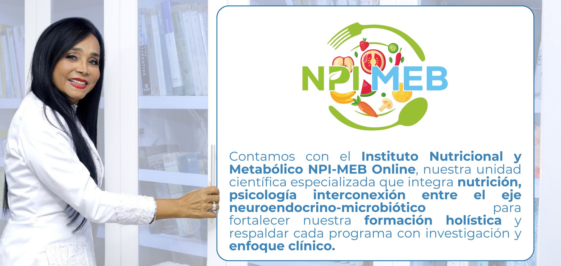 En la Escuela María Eugenia Ballestasm fortalecemos nuestra formación holística con el respaldo del Instituto Nutricional y Metabólico NPI-MEB, una unidad científica propia que articula nutrición, psicología y el eje neuroendocrino-microbiótico.